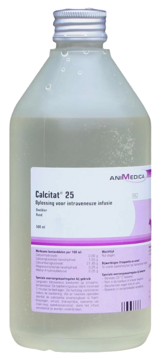Oplossing voor infusie ter behandeling van melkziekte en kopziekte.