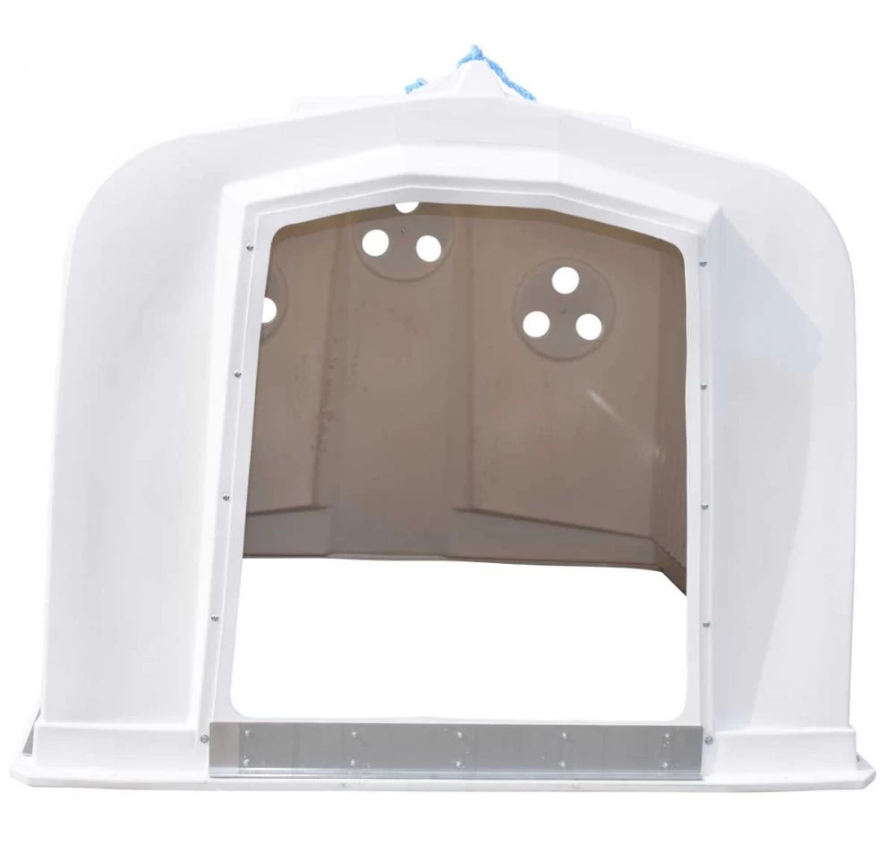 - De hutten zijn voorzien van een polyethyleen drempel die goed reinig- en ontsmetbaar is en een lange levensduur heeft. Het HD-Polyethyleen is niet giftig en kan voor 100% gerecycled worden.