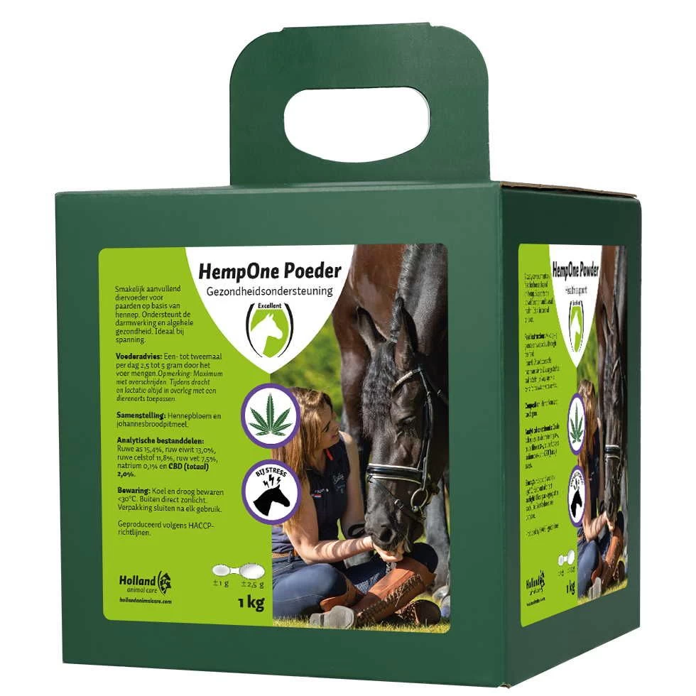 Aanvullend diervoeder voor paarden op basis van hennepbloem. Zeer smakelijk en ideaal bij spanning.