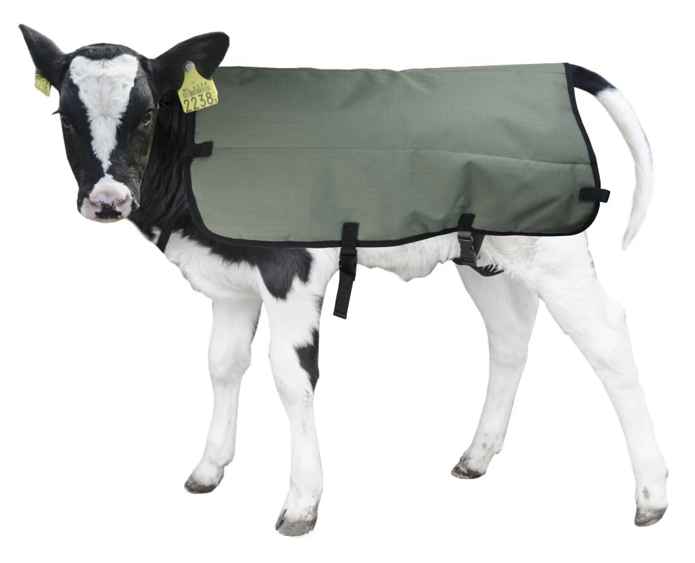 De kalverdek Calf Coat is gemaakt uit scheurvast materiaal 600 Denier Polyester-Ribstop met nylon band + kunststof sluitingen en natuurlijk waterdicht. De kalverdek Calf Coat is tevens gemaakt uit ademend materiaal met een overbrenging van 1000g/m2/24h. Wasbaar op 30°C.