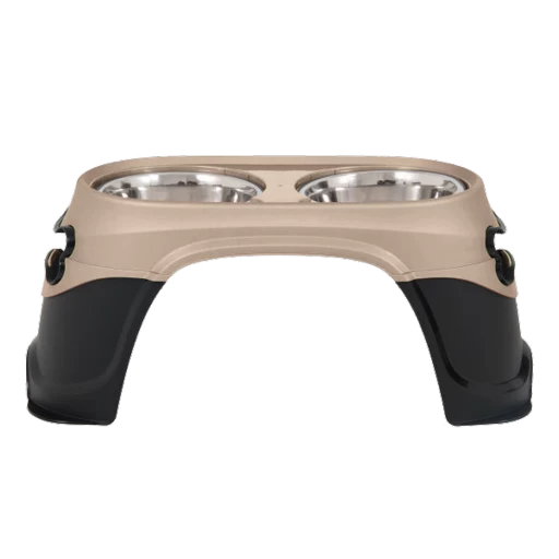 De Easy Reach Diner is licht en makkelijk op te pakken via de botvormige uitsparingen aan de zijkanten. De roestvrijstalen bakken zijn uitneembaar en vaatwasmachinebestendig. De verhoogde randen helpen water en voer op hun plek te houden.